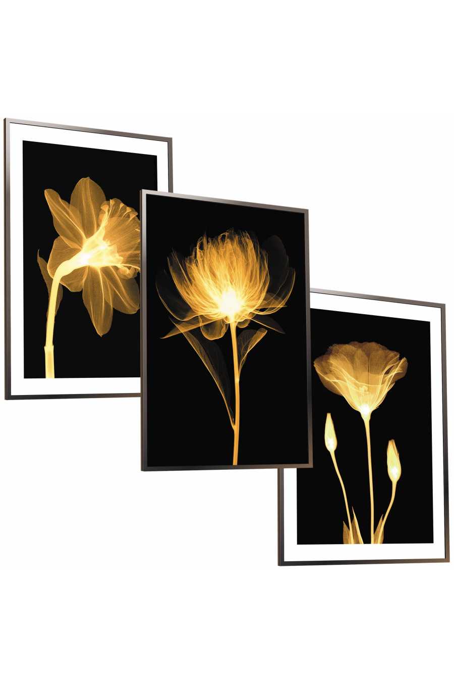 NOWOCZESNY ZESTAW W RAMIE CZARNE ZŁOTE KWIATY BOHO