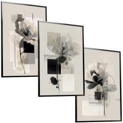 NOWOCZESNY ZESTAW TRZECH OBRAZÓW W RAMIE