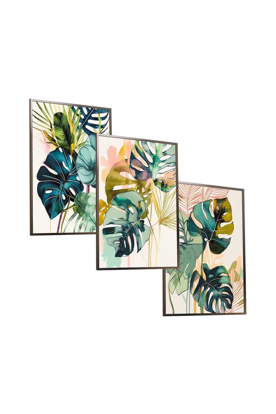 NOWOCZESNY ZESTAW W RAMIE MONSTERA KOLOROWA ROŚLINY LIŚCIE NATURA BOHO