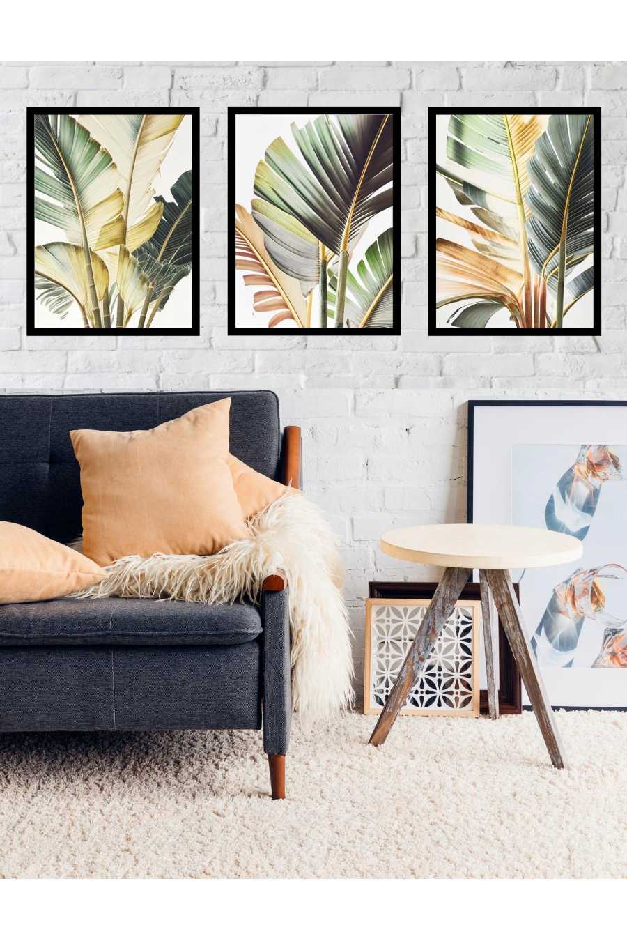NOWOCZESNY ZESTAW W RAMIE PALMY TROPIKALNE ROŚLINY LIŚCIE NATURA BOHO