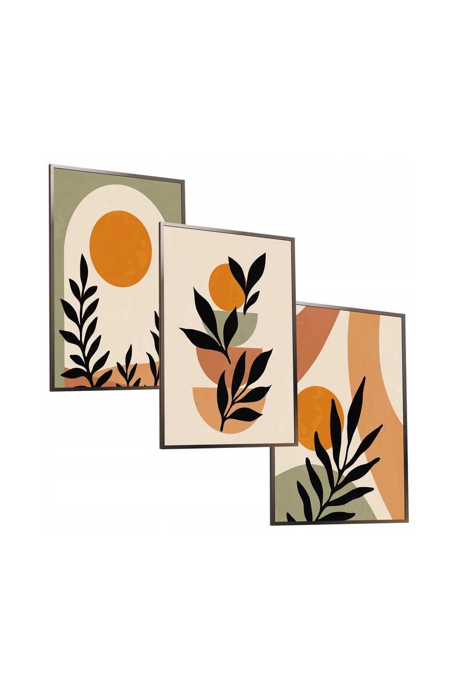 NOWOCZESNY ZESTAW TRZECH OBRAZÓW W RAMIE