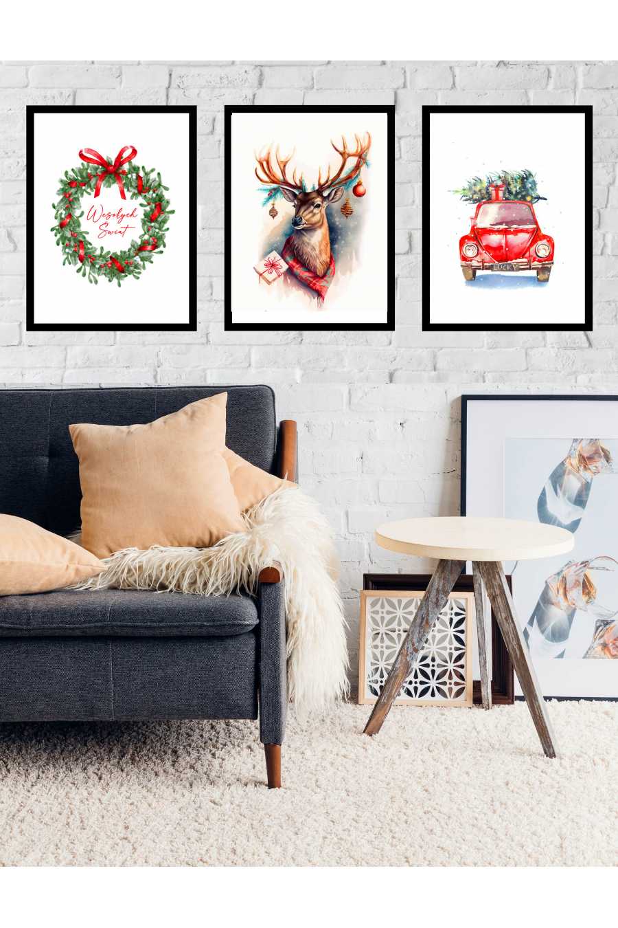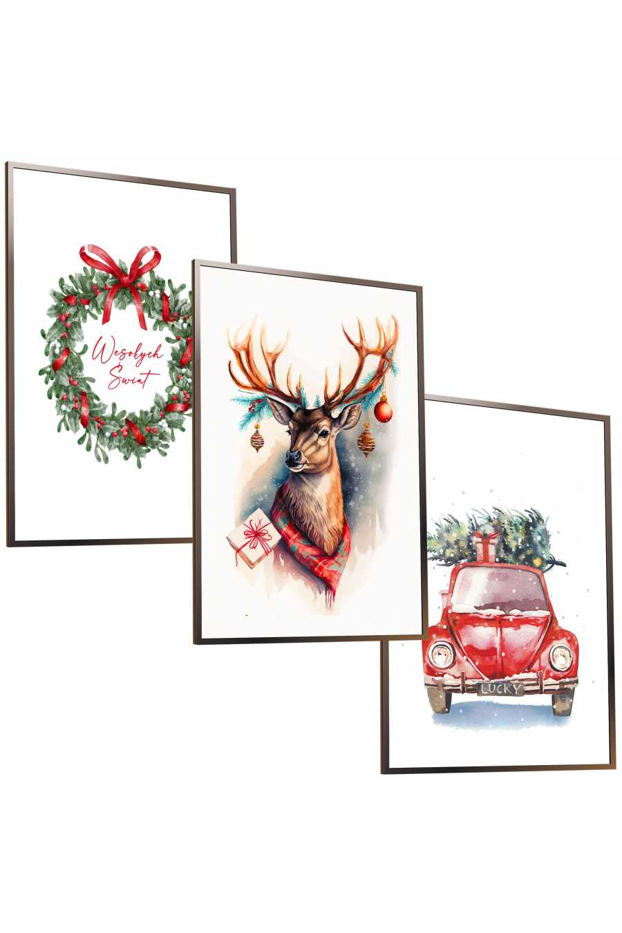 ZESTAW PLAKATY BOHO ŚWIĘTA ZIMA ŚWIĄTECZNE JELEŃ AUTO CHOINKA