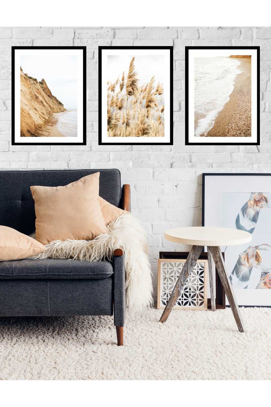 NOWOCZESNY ZESTAW TRZECH OBRAZÓW W RAMIE