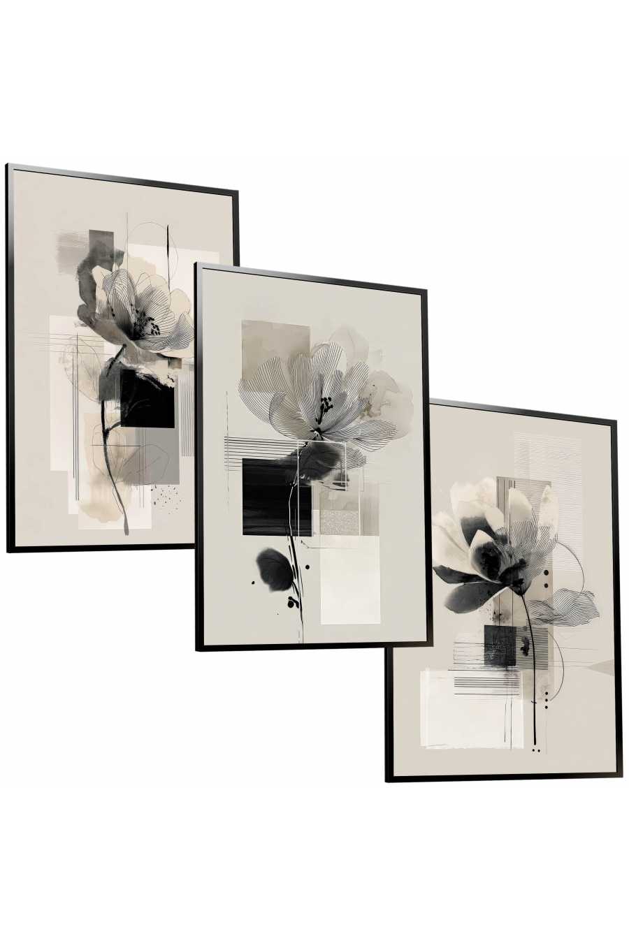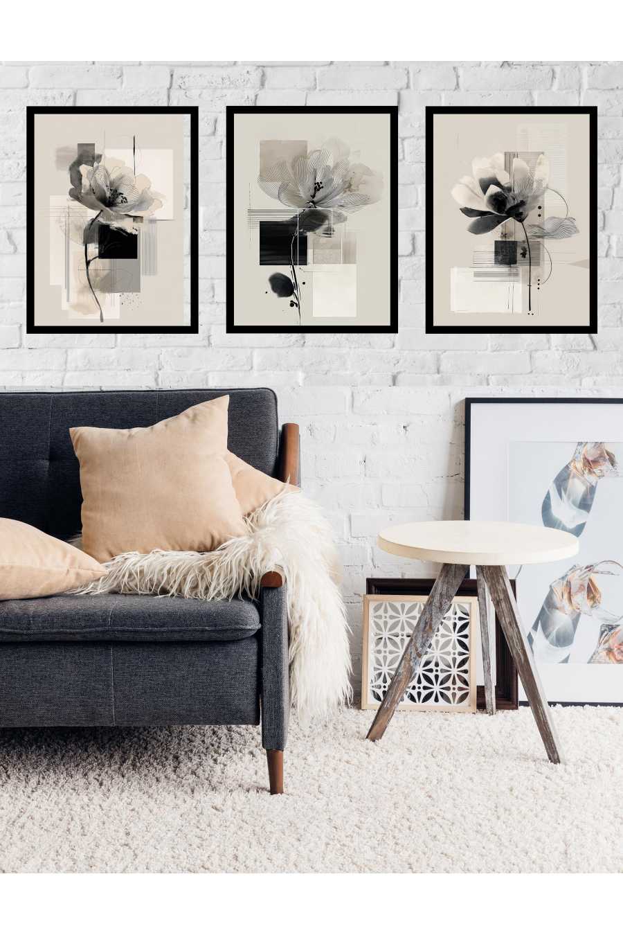 NOWOCZESNY ZESTAW W RAMIE KWIATY NATURA ABSTRAKCJA BOHO