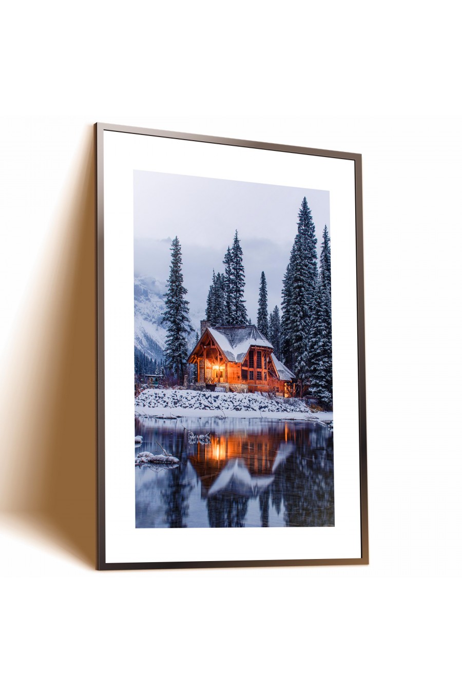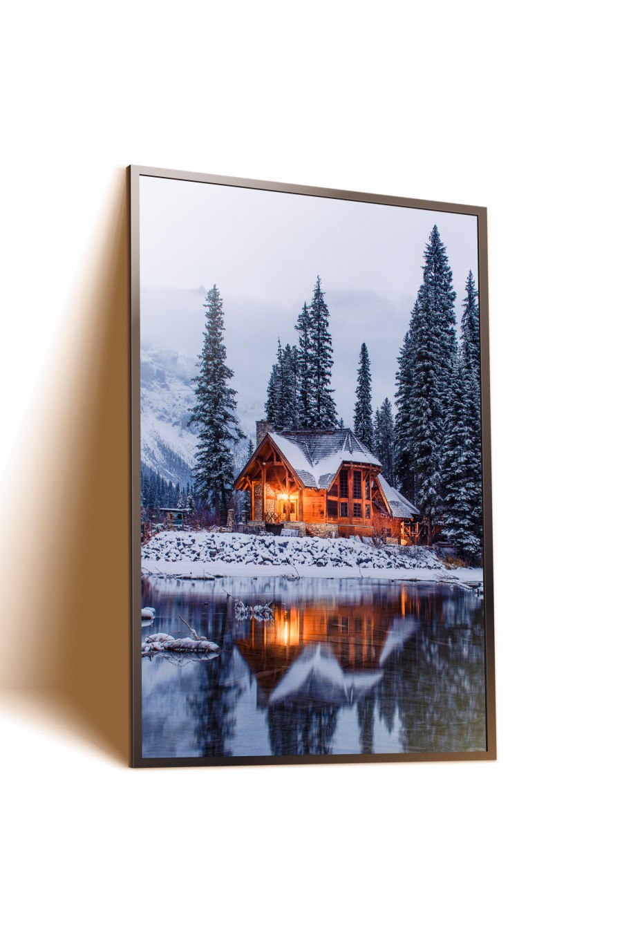 PLAKAT DEKORACYJNY ZIMOWY ŚWIĄTECZNY ŚWIĘTA ZIMA DOM ŚNIEG JEZIORO 042