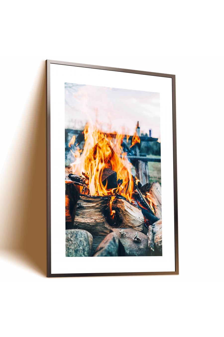 PLAKAT DEKORACYJNY ZIMOWY ŚWIĄTECZNY ŚWIĘTA ZIMA OGNISKO DREWNO 052